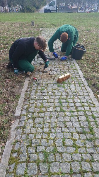Azubis zum Werker im Gartenbau aus verschiedenen Ausbildungsjahren führen zusammen mit Schüler:innen der polnischen Partnerschule Zespol Szkol Nr 1 gärtnerische Arbeiten im Rahmen der Jugendbegegnung und Kriegsgräberpflege in Kooperation mit dem Volksbund Deutsche Kriegsgräberfürsorge e. V (Landesverband Niedersachsen) durch. Begleitet wird die Gruppe dabei von deutschen und polnischen Lehrkräften.